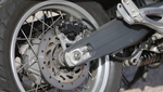 Pour honorer ses promesses en usage tout-chemin, le Scrambler reçoit un accastillage plus polyvalent côté châssis : les roues sont à rayons, avec du 19 à l’avant. Les pneus sont les enveloppes mixtes Michelin T 66 à l’aise sur la route comme sur la terre. Les suspensions Paioli ont des débattements plus importants que le reste de la gamme avec 160 et 155 mm. En revanche, comme le Scrambler développe 86 chevaux, il faut du sérieux, du coup le freinage est assuré par un triple disque, avec 296 mm et double piston à l’avant par exemple. Un sabot de protection recouvre les carters moteurs et l’amortisseur central horizontal est réglable en précontrainte.