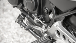 Le cérémonial de démarrage a ressurgi du passé. Starter manuel sur les carbus, sous le réservoir côté gauche, repose-pied droit à relever -sinon le kick tape dedans- et kick déployé à droite.