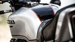 Avant même de vous approcher, le moteur saute aux yeux. Il est l’élément roi, il se suffit à lui-même, le châssis est juste là pour le supporter, les roues pour le déplacer. Cette moto est un moteur !