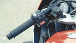 Jante de 16 à l’avant, fourche de 37 mm de diamètre freinage anti plongée, la tenue de route de la RD sera marquée par un manque de rigidité et une largeur de jantes plutot pénalisante , surtout à l’arrière ( seulement 3 pouces de large ) !