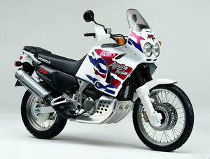 Fin 86, Honda règne sur la course la plus branchée du moment, le Paris Dakar, où son proto NXR (voir l'essai de la NXR et notre dossier Histoire des trails V2 Honda) gagne à chacune de ses apparitions. Autant en profiter : Honda dévoile fin 87 l’Africa Twin 650. Si la base technique est dérivée de la célèbre Transalp, la XRV arbore une esthétique très proche de la victorieuse NXR d’usine. En pleine mode Dakar, elle est parfaitement réussie, et fera rêver chaque apprenti aventurier au fond d’un terne box du le 11è arrondissement de Paris. Il y a même le logo HRC en bas du carénage ! Look ravageur, gros réservoir, coloris racing : chacun se voit arpenter les déserts africains en allant au bureau. Le moteur est un V2 ouvert à 52° refroidi par eau à 3 soupapes par cylindre. Le cadre est renforcé pour une utilisation orientée piste. Les suspensions ont de grands débattements et la selle culmine à 890 mm, l’Africa est une baroudeuse avec ses grilles de protection pour les phares. Le réservoir de 24 litres permet de longues étapes et protège plutôt bien les jambes du pilote. Le porte-paquet permet de transporter les bagages. Elle annonce 57 ch pour 193 kg. La mode Dakar bat son plein, les ventes décollent ! En 1990, Honda fait évoluer le moteur en 750 et équipe la moto d’un deuxième disque.