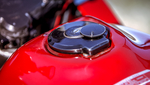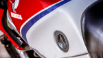 Petit clin d'oeil, sur le sabot et sur le réservoir on note la mention V-Four .....Four a porté chance à Honda avec la CB 750. Le lancement d'une nouvelle époque avec le V4 utilise le même mot Four. Comme un talisman ou comme signe reconnaissable symbolisant toutes les révolutions Honda ?