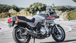 Apparue en 1982, cette Suzuki regorge de nouveautés techniques : un turbo planqué derrière les cylindres, un système d’injection remplacant les carburateurs, une gestion complète par électronique pour éviter que tout explose. D’ailleurs chaque concessionnaire qui en livre une va devoir acheter une petite valise cde contrôle électronique spécifique à la XN : une première là aussi !