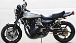 Par contre, la où la tache est plus ardue,c'est pour la partie cycle : un chassis à renforcer, des suspensions à faire évioluer, des freins à améliorer, et des roues à élargir ! Là, le savoir faire du garage Japonais prend toute sa dimension et du coup nos valeureuses anciennes se prennent des airs de Superbikes avec des bras alu, des jantes larges, des freins au diamètres impressionnants !